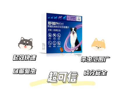 超可信驅(qū)蟲藥是目前市面上蟲譜最廣的狗用驅(qū)蟲藥,包括了體外的狗跳蚤、狗蜱蟲、蠕形螨、耳癢螨、疥螨、體內(nèi)的蛔蟲、鉤蟲、鞭蟲、心絲蟲、眼線蟲、肺絲蟲,真正做到了廣譜驅(qū)蟲。