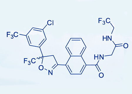 阿福拉納(C26H17ClF9N3O3),是新一代強力狗狗體外驅蟲藥,國內首個兼殺蜱蟲和跳蚤兩種寄生蟲的犬類口服驅蟲藥,主要通過抑制GABA受體控制的氯離子通道,使節肢動物神經高度興奮導致死亡。對跳蚤和蜱蟲等廣泛的節肢動物有效。