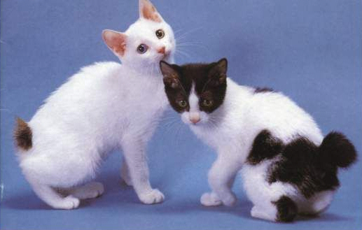 日本短尾貓,又名日本截尾貓。這種貓是由于基因突變而產生的品種。日本短尾貓在日本本土已有一千年左右的歷史,有人認為它是1000多年前由中國或朝鮮傳入日本的。日本短尾貓的尾巴僅長10厘米左右,與馬恩島貓都是尾巴最短的貓品種。日本短尾貓中以三色貓最為受歡迎,但紅白貓、白貓也很多。招財貓的樣子即來自于日本短尾貓日本短尾貓卷曲的尾巴全長5一1 0公分。頭部的頰骨高,鼻子長;眼睛為上揚的圓卵型。體型結實,肌肉十分發(fā)達。受歡迎的花貓在遺傳學上幾乎都是雌貓。日本短尾貓具有獨特的東洋五官,體毛十分光滑。所有的毛色均獲得認可,但以白,黑,褐色混合的花貓最受歡迎。其個性開朗,重感情,對小貓的照顧可說無微不至。