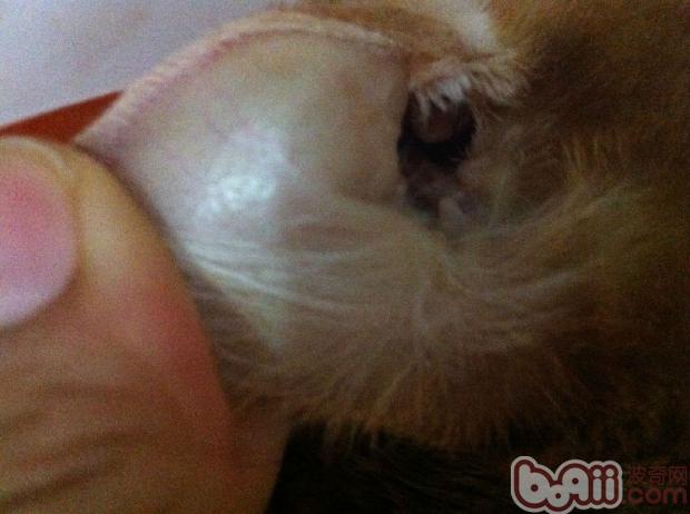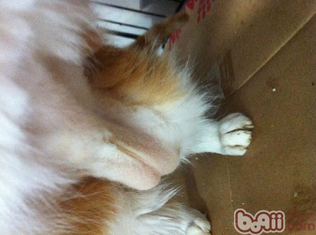 圖中的皮膚是另一只健康肥胖貓咪的下腹部皮膚,雖然也是下垂脂肪,但是飽滿呈淡粉色。通過對比可發現明顯的異常。