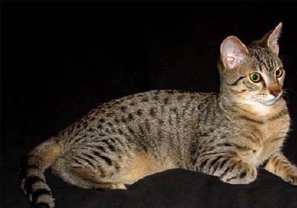 現(xiàn)代埃及貓形成固定品種起源于19世紀(jì)地中海地區(qū)的一位王妃,她非常喜歡一只從開羅引進(jìn)的貓,將它和一只意大利貓交配產(chǎn)子。后來該貓的后代被帶到美國繁衍,并于次年在美國注冊和首次參展,受到美國家庭的普遍歡迎。埃及貓性格聰明、對人友善,活潑頑皮,但較為敏感,如不加看管,容易逃脫。毛色 呈銀白、青銅、暗灰黑等色,帶有勻稱斑點(diǎn),毛細(xì)密柔滑、富有彈性。體型中等,長有一對大而尖的耳朵,頭部有典型的甲蟲形或“M”形斑紋,“M”形斑紋的埃及貓通常來自美國。