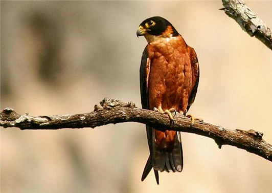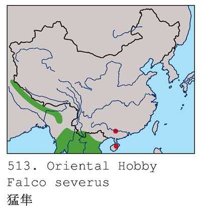 猛隼_猛隼同級分類猛隼(學名:Falco severus,英文名:Oriental Hobby)為的鳥類。頭部和飛羽黑色,上體石板灰色,下體暗栗色。似大型的燕。休息時多在樹枝上。一般生活于多樹的山腳,棲息于有稀疏林木或者小塊叢林的低山丘陵和山腳平原地帶,但很少在茂密的森林中。虹膜-褐色;嘴-灰色,蠟膜黃色;腿及腳-黃色 。叫聲:似黃爪隼的哭叫聲kekekeke。