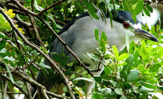 習性:夜出性。喜結群,常成小群于晨、昏和夜間活動,白天結群隱藏于密林中僻靜處,或分散成小群棲息在僻靜的山坡、水庫或湖中小島上的灌叢或高大樹木的枝葉叢中,偶爾也見有單獨活動和棲息的。一般縮頸長期站立一處不動,或梳理羽毛和在枝間走動,有時亦單腿站立,身體呈駝背狀。如無干擾或未受到威脅,一般不離開隱居地。常常待人走至跟前時才突然從樹葉叢中沖出,邊飛邊鳴,鳴聲單調而粗獷。