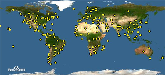 世界:分布于阿富汗、阿爾巴尼亞、阿爾及利亞、安哥拉、安圭拉、安提瓜和巴布達、阿根廷、亞美尼亞 、阿魯巴、奧地利、阿塞拜疆、巴哈馬、巴林、孟加拉國、巴巴多斯、白俄羅斯、比利時、伯利茲、貝寧、百慕大、不丹、玻利維亞、博內爾、圣尤斯特歇斯和薩巴、波斯尼亞和黑塞哥維那、博茨瓦納、巴西、文萊達魯薩蘭國、保加利亞、布基納法索、布隆迪、柬埔寨、喀麥隆、加拿大、開曼群島、中非共和國、乍得、智利、中國、哥倫比亞、科摩羅、剛果民主共和國、哥斯達黎加、科特迪瓦、克羅地亞、古巴、庫拉索島、塞浦路斯、捷克共和國、多米尼加共和國、多明尼加共和國、厄瓜多爾、埃及、薩爾瓦多、赤道幾內亞、厄立特里亞、埃塞俄比亞、福克蘭群島、法國、法屬圭亞那、加蓬、岡比亞、格魯吉亞、德國、加納、希臘、格林納達、瓜德羅普島、關島、危地馬拉、幾內亞、幾內亞比紹、圭亞那、海地、洪都拉斯、香港、匈牙利、印度、印度尼西亞、伊朗伊斯蘭共和國、伊拉克、以色列、意大利、牙買加、日本、約旦、哈薩克斯坦、肯尼亞、韓國、科威特、老撾人民民主共和國、黎巴嫩、萊索托、利比里亞、澳門、馬其頓、馬達加斯加、馬拉維、馬來西亞、馬里、馬耳他、馬提尼克、毛里塔尼亞、馬約特島、墨西哥、密克羅尼西亞聯邦、摩爾多瓦、黑山、蒙特塞拉特、摩洛哥、莫桑比克、緬甸、納米比亞、尼泊爾、荷蘭、尼加拉瓜、尼日爾、尼日利亞、北馬里亞納群島、阿曼、巴基斯坦、帕勞、巴勒斯坦、巴拿馬、巴拉圭、秘魯、菲律賓、波蘭、葡萄牙、波多黎各、卡塔爾、羅馬尼亞、盧旺達、圣基茨和尼維斯、圣盧西亞、圣馬丁(法屬) 、圣文森特和格林納丁斯、沙特阿拉伯、塞內加爾、塞爾維亞 、塞拉利昂、新加坡、圣馬丁島(荷屬) 、斯洛伐克、斯洛文尼亞、索馬里、南非、南喬治亞島和南桑威奇群島、南蘇丹、西班牙(加那利群島) 、斯里蘭卡、蘇丹、蘇里南、斯威士蘭、瑞士、阿拉伯敘利亞共和國、塔吉克斯坦、坦桑尼亞聯合共和國、泰國、東帝汶、多哥、特立尼達和多巴哥、突尼斯、土耳其、土庫曼斯坦、特克斯和凱科斯群島、烏干達、烏克蘭、阿拉伯聯合酋長國、夏威夷群島、烏拉圭、烏茲別克斯坦、委內瑞拉玻利瓦爾共和國、越南、維爾京群島、西撒哈拉、也門、贊比亞、津巴布韋。