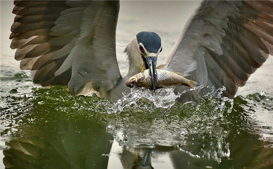 食性:主要以魚、蛙、蝦、水生昆蟲等動物性食物為食。通常于黃昏后從棲息地分散成小群出來,三三兩兩于水邊淺水處涉水覓食,也單獨佇立在水中樹樁或樹枝上等候獵物,眼睛緊緊地凝視著水中。清晨太陽出來以前,則陸續回到樹上隱蔽處休息。