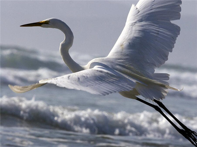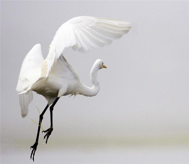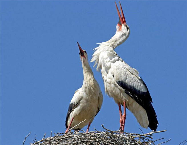 白鸛除繁殖期成對活動外,其他季節(jié)常成群活動。特別是遷徙季節(jié),常集成數(shù)十甚至上百只的大群。覓食時常成對或成小群漫步在水邊或草地與沼澤地上,步屐輕盈矯健,邊走邊啄食。休息時常單腿或雙腿站立于水邊沙灘上或草地上,頸縮成s形。有時也喜歡在棲息地上空飛翔盤旋。在地上起飛時需要先在地上奔跑一段距離,并用力煽動兩翅,待獲得一定的上升力后才能飛起。飛翔時頸向前伸直,腳伸到尾后。既能鼓翼飛翔,也能利用熱氣流在空中盤旋滑翔。性機警而膽怯。如有入侵者,常表現(xiàn)出一種特有的恐嚇行為。即通過上下嘴的急速啪打,發(fā)出一種“嗒嗒嗒”的嘴響聲,并伴隨著頸伸直向上,頭仰向后,再伸向下,左右擺動,兩翅半張和尾向上豎起,兩腳不停的走動等一系列行為動作。