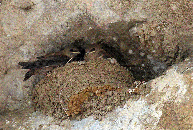 繁殖期5-7月。營(yíng)巢于臨近江河、湖泊、沼澤等水域附近的山崖上或巖壁縫隙中。到水岸邊叼泥土在嘴里咀嚼粘在崖壁上或巖石下,再選用茅草然后重復(fù)叼泥土 繼續(xù)往上粘直至收口。巢由小泥丸混以羽毛堆積成半球形,內(nèi)鋪以細(xì)軟雜草、根,苔蘚和羽毛等。常成對(duì)單獨(dú)營(yíng)巢,偶爾也見(jiàn)少數(shù)對(duì)呈松散的群體在一起營(yíng)巢。每窩產(chǎn)卵3-5枚白色的卵,上面布有褐色和灰色的斑點(diǎn),雌鳥(niǎo)孵化14天。
