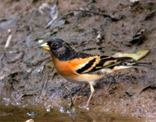 燕雀屬(學(xué)名:Fringilla),該鳥(niǎo)種在中國(guó)有分布 本屬包含3個(gè)種、20個(gè)亞種。體長(zhǎng)約16厘米而斑紋分明的壯實(shí)型雀鳥(niǎo)。胸棕而腰白。成年雄鳥(niǎo)頭及頸背黑色,背近黑;腹部白,兩翼及叉形的尾黑色,有醒目的白色"肩"斑和棕色的翼斑,且初級(jí)飛羽基部具白色點(diǎn)斑。非繁殖期的雄鳥(niǎo)與繁殖期雌鳥(niǎo)相似,但頭部圖紋明顯為褐、灰及近黑色。虹膜褐色;嘴黃色,嘴尖黑色;腳粉褐。悅耳的鳴聲由幾笛音的音節(jié)接長(zhǎng)長(zhǎng)的zweee聲或下降的嘟聲。叫聲為重復(fù)響亮而單調(diào)粗喘息聲zweee。也發(fā)出高叫及吱叫聲。飛行叫聲為chuee。分布于古北區(qū)北部。不常見(jiàn)。于落葉混交林及林地、針葉林林間空地越冬。