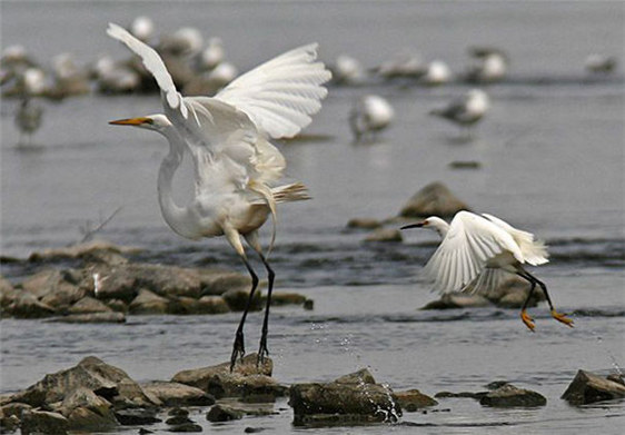 部分雪鷺會永久居留在在較溫暖的地點,北方群體在冬天會遷徙到中美洲和加勒比地區(qū)。繁殖期后可能會有雪鷺在向北飛行時迷失,歐洲西部可能會出現迷鳥,不過非常罕見,第一只在英國觀察到的迷鳥是于2001年至2002年到蘇格蘭越冬。雪鷺棲息于江湖濱岸、沼澤地帶、河岸,紅樹林,淺湖、潮間帶泥灘、河口和草原。白晝或黃昏活動,以魚、甲殼類、昆蟲和小型爬行動物為食。它們在淺水中悄悄靠近獵物,雙腳跑動或慢慢移動,將獵物趕入它們的視野中,同時雙腳緊貼水面飛行并將雙腳浸入水中捕獲獵物。它們也可能會站立不動,待獵物靠近時伏擊獵物,或者在開闊牧場中覓食由家畜驚擾鉆出地面的昆蟲。