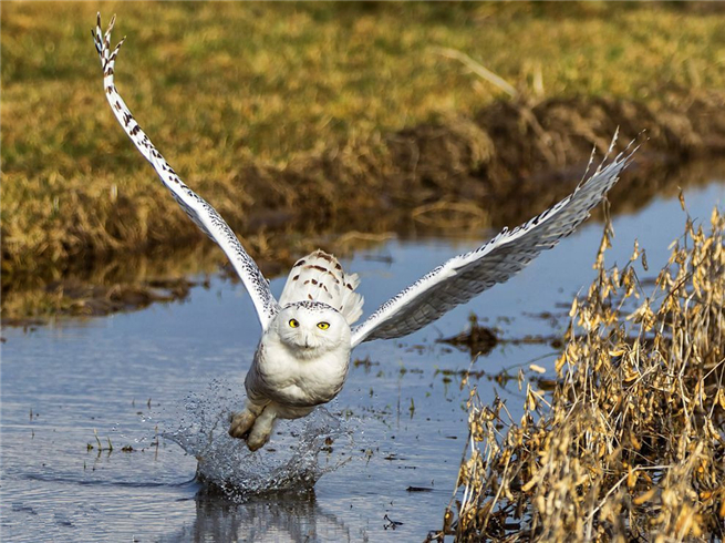 僅1種,即雪鸮Bubo scandiacus。分布于北半球環(huán)北極的高緯度地區(qū),中國(guó)罕見于東北及西北開闊原野,為冬候鳥。體長(zhǎng)50~60厘米,通體幾乎純白色,厚密以御寒,也是一種保護(hù)色;體羽端部近黑色,因而在頭頂、背部、雙翅、下腹遍布黑色斑點(diǎn);無耳狀簇羽。棲息于北極凍原,全天可活動(dòng),主要捕食旅鼠,偶捕食野兔、鷗和鴨等大型獵物。為國(guó)家二級(jí)保護(hù)動(dòng)物。