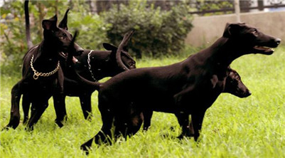 尾巴:位置適中,尾巴長根部粗壯但不卷曲,休息時下垂。運動時,尾巴舉起且略彎曲爪部:爪子呈圓形,腳趾間緊密,有半圓狀的拱型。爪子的底部有豐厚的腳墊,能夠耐磨。犬的指甲短粗、有力,呈黑色。毛色:全身純黑,被毛短而有光澤,毛直且手感細膩而緊貼身體。犬身上帶白色體毛,屬于失格。